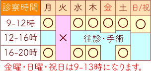 平日が午前中9時から12時まで午後が16時から18時まで。