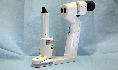 今まで使用していたハンドスリットランプと比較して両手が使えますので、拡大観察しながら、処置ができます。