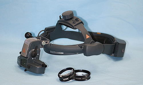 目の奥の眼底(網膜)を立体的に観察する道具です。
