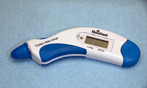 点眼麻酔をして、左側の水色の部分を黒目に軽く何度か接触させて測定します